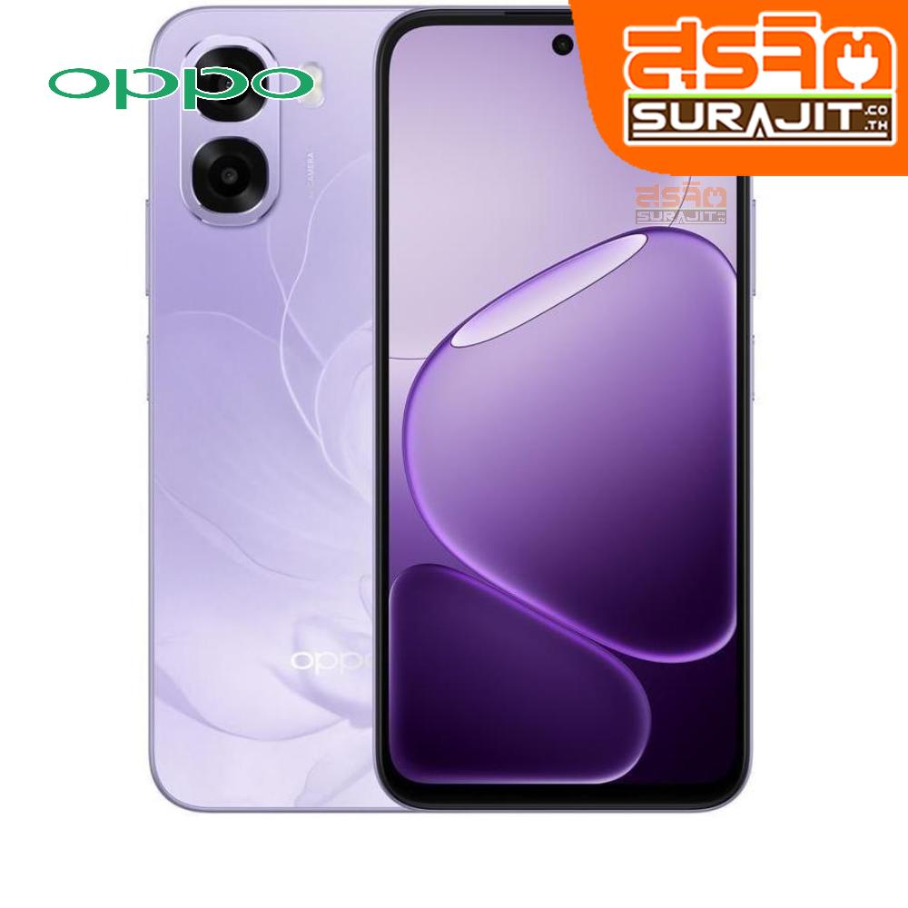 โทรศัพท์มือถือ OPPO A6 128GB สีม่วงขนาดจอ 6.75 นิ้วระบบปฏิบัติการ Color OS 15 ,Base on Android 15 RAM 4 GB/ Rom 128 GB กล้องหน้า 5MP กล้องหลัง 13MP+QVGA แบตเตอรี่ 6500 mAh สินค้า กว้าง x ลึก x สูง 7.8x.8x16.5 ซม., 0.21 กก.